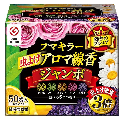 フマキラー虫よけアロマ線香ジャンボ50巻函入 5色パック